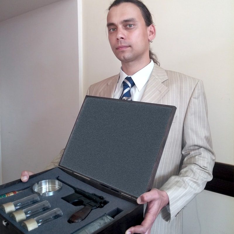 Его можно вынуть из подставки, представить себя на минуту офицером Преображенского полка (Набор «Дуэльный») или оперативником уголовного розыска (набор «Ствол») — а затем положить обратно, под стекло, чтобы не пугать секретаршу.