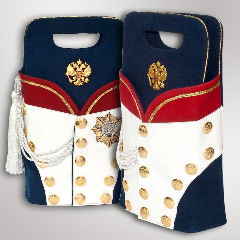 Подарочный набор "Фельдмаршал" - это оригинальный подарок для людей, которые чтут традиции России, ее победы и достижения. Внешний вид упаковки (кофр) стилизован под военную униформу российской армии 1812 года (офицерский мундир). Такой подход позволил придать подарку неповторимость и очень оригинальный вид. Кофр универсален, он может вмещать в себя любые подходящие по размеру подарки. Продукция уникальна, аналогов нет, это собственная разработка нашей компании.
