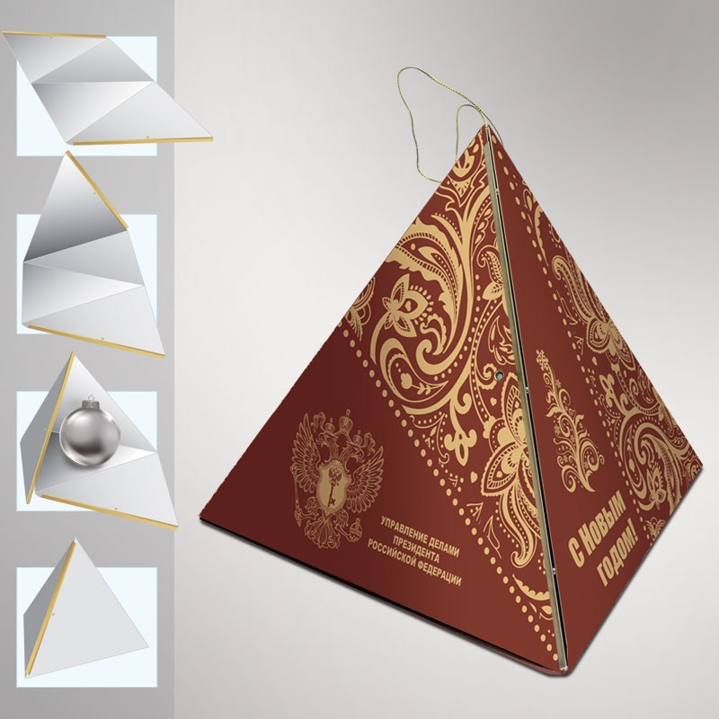 Эксклюзивный, ранее не издававшийся календарь, который превращается в оригинальный футляр для новогоднего подарка. Календарь может быть укомплектован любым сувениром по Вашему желанию, например, стеклянным ёлочным шариком с логотипом, изготовленным под заказ. Стоимость сувенира рассчитывается отдельно.