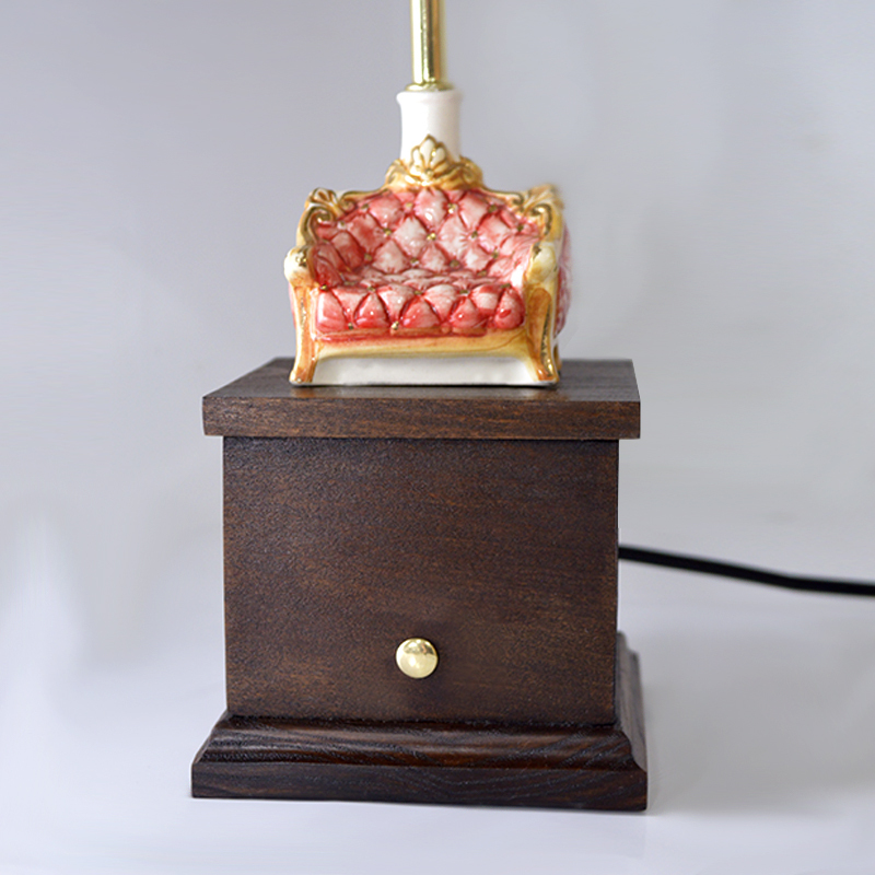 Фарфор, дуб, сенсорное включение, цвет абажура на выбор