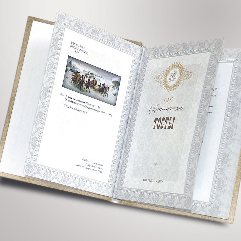 Когда эмоции переливаются через край и дружный тост за юбиляра уже отразил все стороны его прекрасной сущности – на помощь приходят «Классические тосты». Это книга, которая не даст Вам говорить банально, потому что за Вашей речью будут стоять классики прозы и поэзии. Надо лишь добавить к здравице пару классических афоризмов. Они как тонкая серебряная вязь на трех рюмках из вишневого дерева, в которые мастер-ювелир вбивал тонкие пластинки из чистого серебра. Он создал три маленьких шедевра – с орнаментом из серебра, чтобы Вы могли вручить их вместе с тостами и пожеланиями долгих лет и бесконечного здоровья своему другу, коллеге или начальнику.